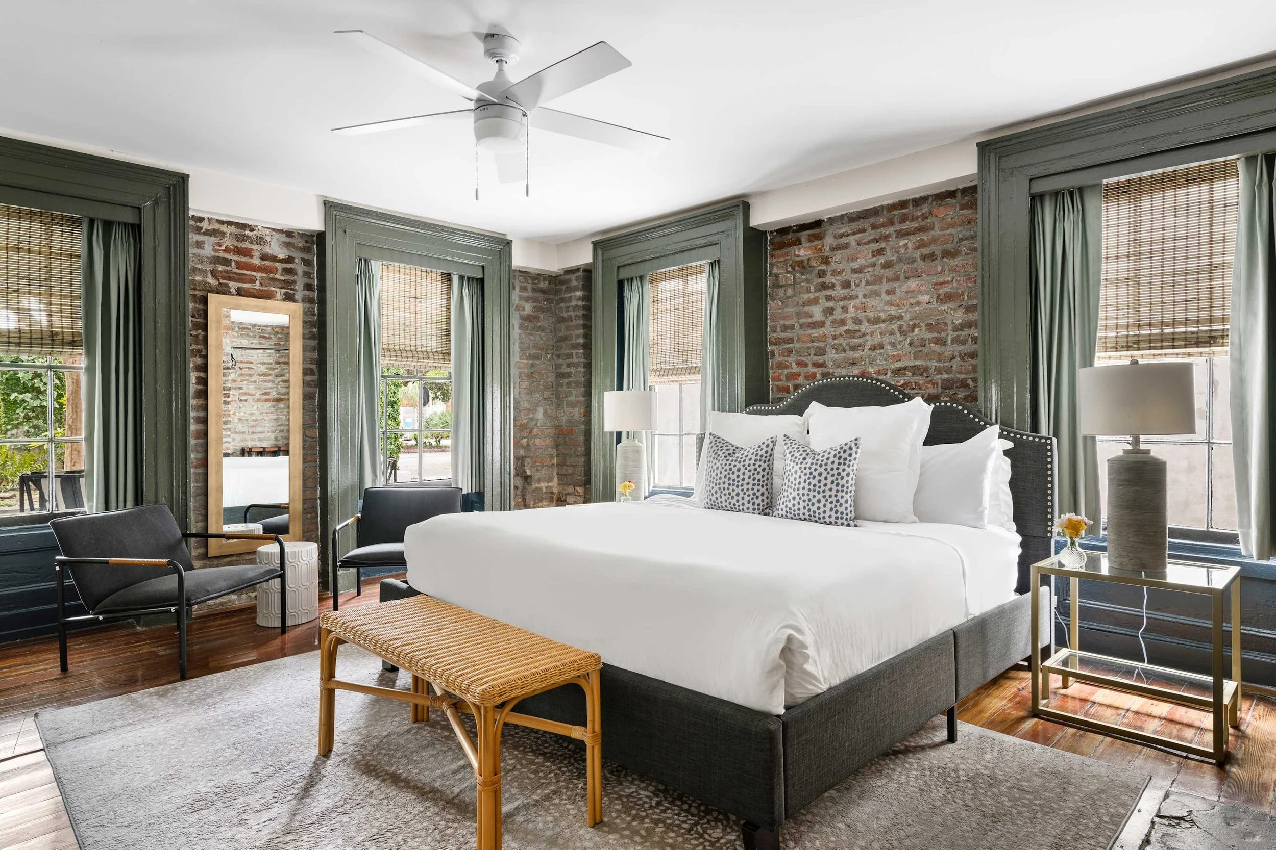 Draped in Spanish moss and nestled within a charming Charleston neighborhood, this newly renovated grand 10-bedroom, 7-bath retreat blends timeless Southern character with modern luxury. Can be booked as a full unit or two separate units to accomodate smaller groups.